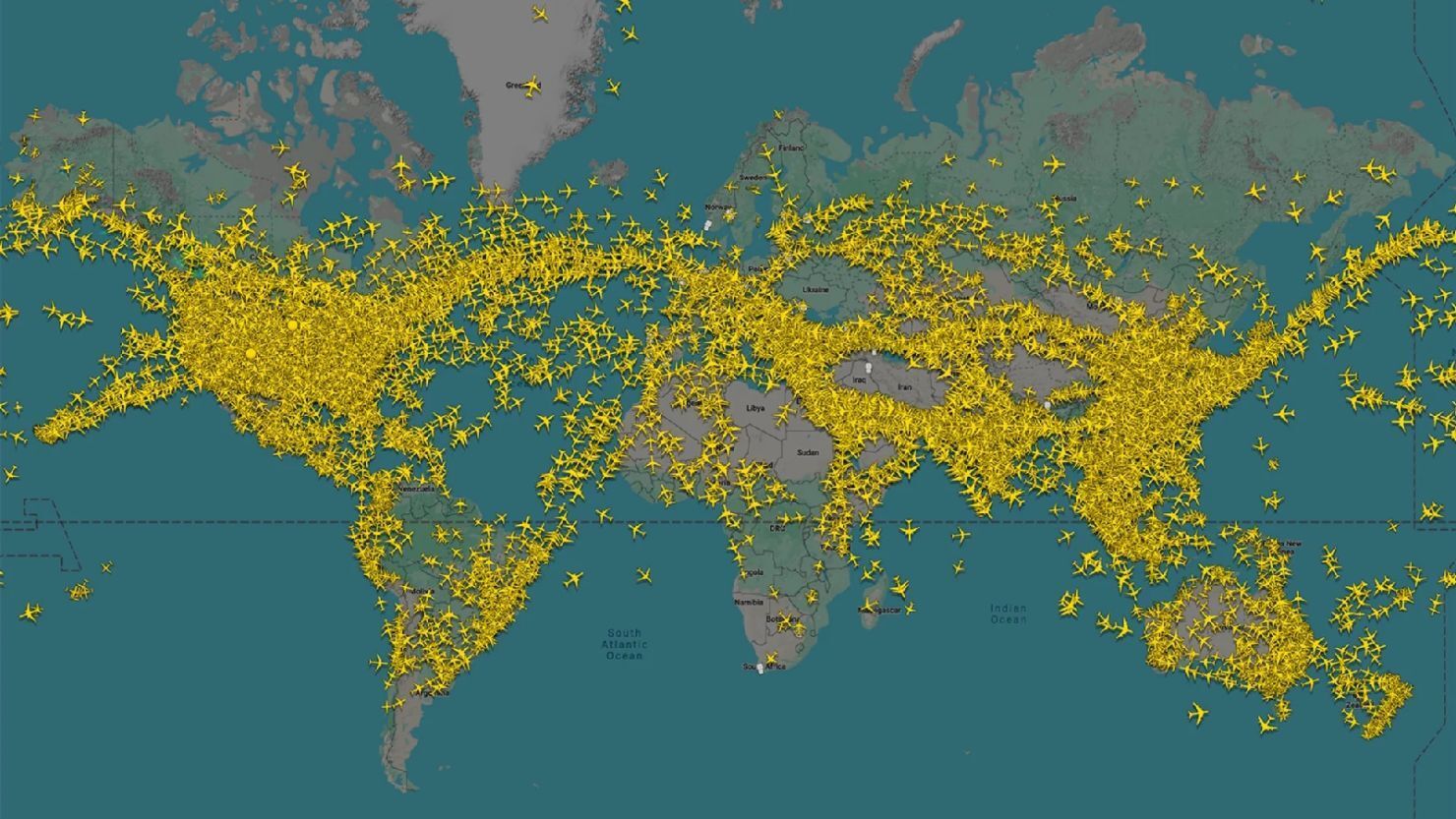 En todo momento hay en el aire entre 12.000 y 20.000 aviones (más de 1 millón de personas en el aire, mañana, tarde y noche)